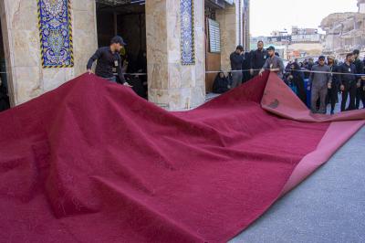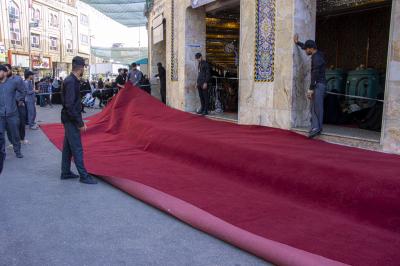 أنهت ملاكات قسم الشؤون الخدمية في العتبة العباسية المقدسة، عملية فرش محيط مرقد أبي الفضل العباس (عليه السلام) بالسجاد الأحمر.