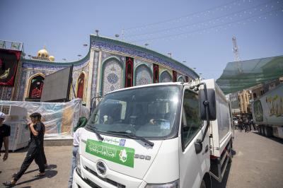 “Planın ikinci etabı ise hizmet araçları ile ilgilidir. Bölümümüz bu etap kapamında farklı alanlarda çalışmak üzere özel amaçlı araçlar tahsis etmiştir. Mukaddes Hz. Abbas (a.s.) Türbesi’ne bağlı mevkilere su temini, içme suyu ve genel kullanım amaçlı su temini sağlayan tankerler Medîne-i Kadîme bölgesinin içinde ve dışında hizmet vermektedir. Sıhhi sarfiyat suyu vakumlayan araçlar ve çöp kamyonları da bu kapsamda hizmete dahil edilen özel araçlardandır.”