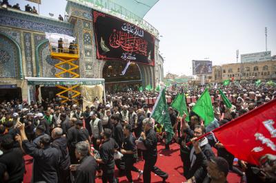 ويدخل العزاء عبر باب الإمام الحسن وباب الإمام الحسين (عليهما السلام) وباب الإمام صاحب الزمان (عجل الله تعالى فرجه الشريف) وباب الإمام موسى الكاظم (عليه السلام)، وفُتِحت هذه الأبواب الأربعة لتخفيف الزخم الحاصل في منطقة ما بين الحرمين الشريفين.