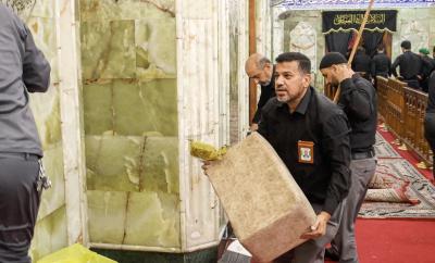 أجرت ملاكات شعبة الحرم الشريف في العتبة العباسية المقدسة، حملة تنظيف وترتيب موسعة لحرم أبي الفضل العباس(عليه السلام)، بعد الانتهاء من عزاء ركضة طويريج.