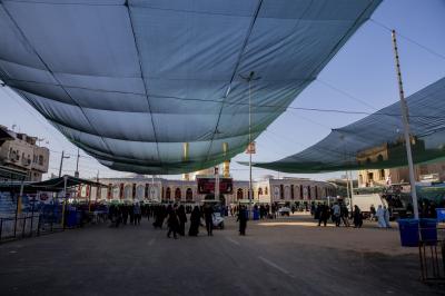 Ali explained that"the division installed water spray systems to soften the atmosphere, as an area of approximately (2 kilometers ) was covered with shade cloth from al-Jumhuriya Street, and the areas surrounding the Al-Abbas's (p) holy shrine.