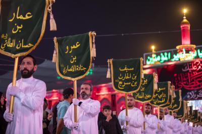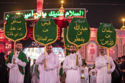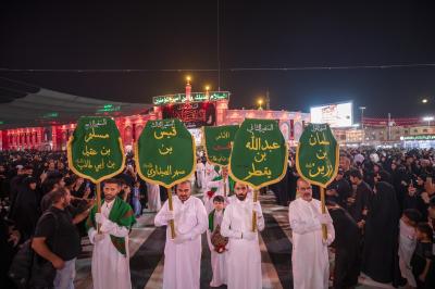 وخصص الموكب الذي سار بخطين متوازيين 4 من اللافتات الــ94 حملت أسماء سفراء الإمام الحسين (عليه السلام)، و18 أخرى لبني هاشم (عليهم السلام) و72 لافتة كتبت عليها أسماء الشهداء الكرام أصحاب الإمام الحسين (عليه السلام) في واقعة الطف الخالدة.