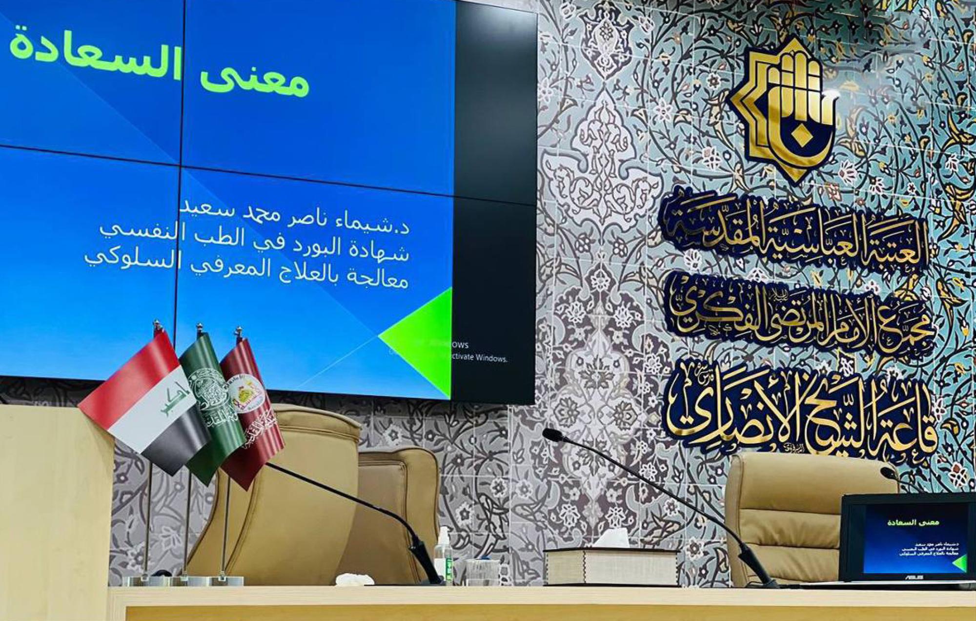 وشهدت فقرات البرنامج تقديم محاضرة بعنوان (معنى السعادة)، للمختصّة بالطبّ النفسي والعلاج المعرفي الدكتورة شيماء ناصر، سلّطت فيها الضوء على المعنى الحقيقي للسعادة وكيفية الشعور بها، وعلى الأمور التي ينبغي للإنسان تعلّمها والاستمرار عليها للوصول إلى السعادة الحقيقية.