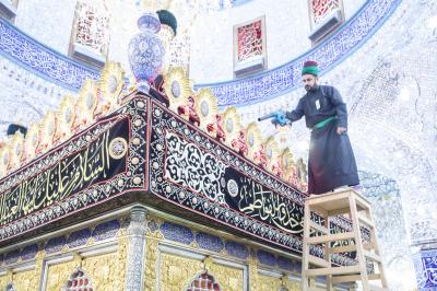 وأُجرِيت الأعمال بمشاركة عضو مجلس إدارة العتبة المقدسة السيد كاظم عبادة وعدد من رؤساء الأقسام وخدمة المرقد الطاهر.