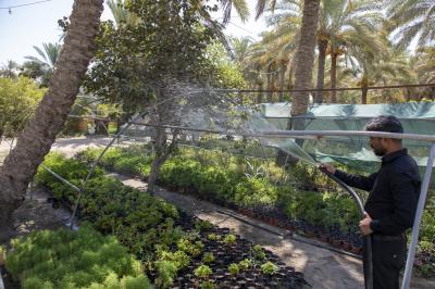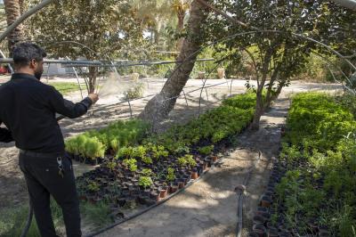 "Die Al-Kafeel Baumschulen arbeitet an der Produktion von saisonalen, immergrünen, schattigen und fruchtbaren Pflanzen mit ihren verschiedenen Sorten, die in den Gärtnereien durch Samen oder beschnittene Bäume vermehrt werden", sagte der Agraringenieur der Gärtnereien, Mohammed Daoud.