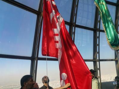 Bendera ya Imamu Hussein na ndugu yake Abulfadhil Abbasi (a.s) zimepandishwa juu ya mnara wenye urefu wa mita 420 ambao ndio mnara mrefu zaidi jijini Tehran.