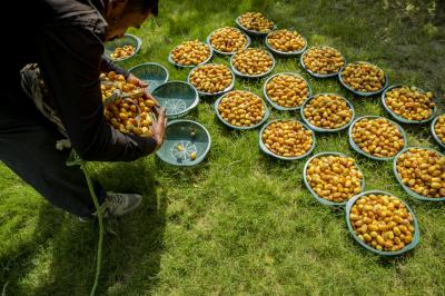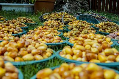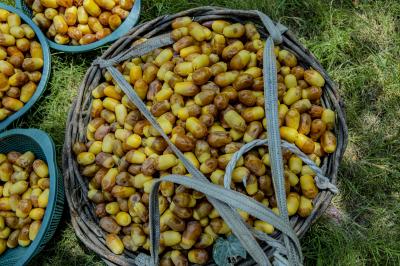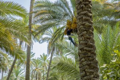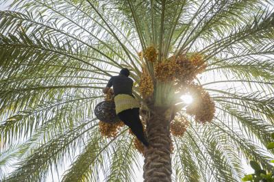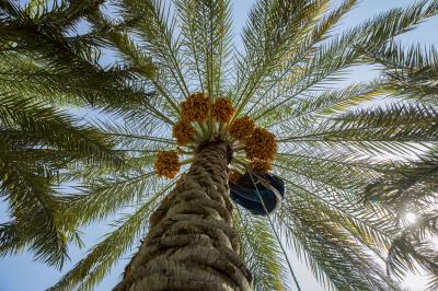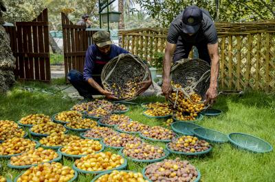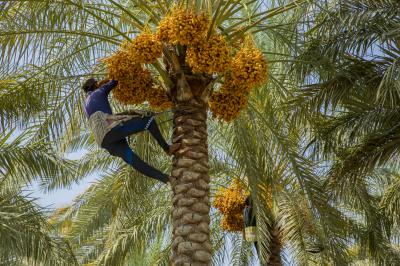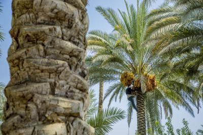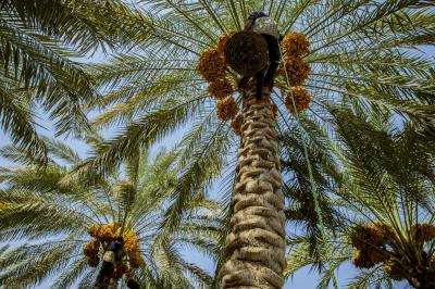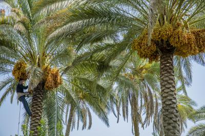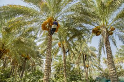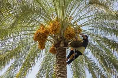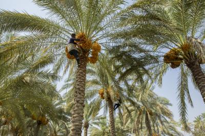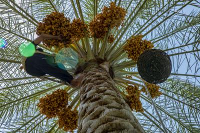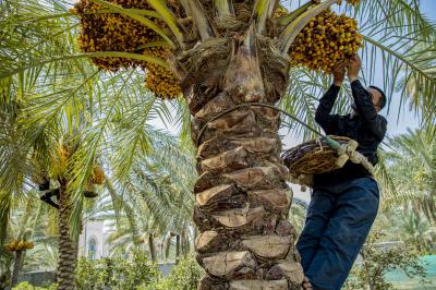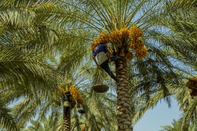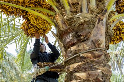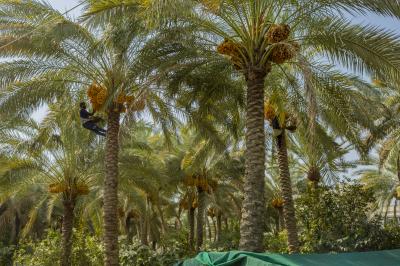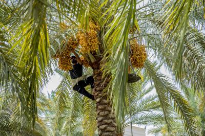 The group's official, Mr. Mohammed Harbi, said that"the staff of the specialized group of palm climbers have started harvesting the harvest of palm fruits grown inside the nurseries, on a daily basis in conjunction with the date picking season".