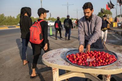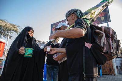 Visitors heading to Holy Karbala to commemorate the Arba'een of the martyrdom anniversary of Imam al-Hussayn (peace be upon him) continue their march in Basra province.