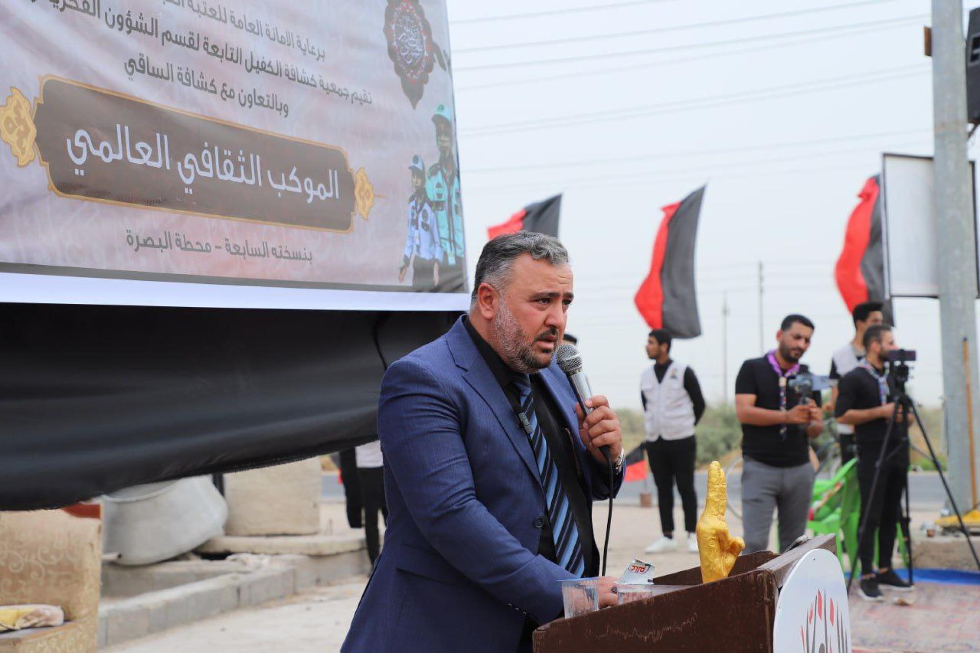 وقال مسؤول شعبة الأنشطة والمخيمات في جمعية كشافة الكفيل التابعة للقسم الدكتور زمان الكناني إنّ "الجمعية افتتحت الموكب الثقافي لأوّل مرة في محافظة البصرة بالتعاون مع كشافة الساقي، وسيقدم خدماته لزائري الأربعين المتوجهين سيرًا على الأقدام صوب كربلاء المقدسة".