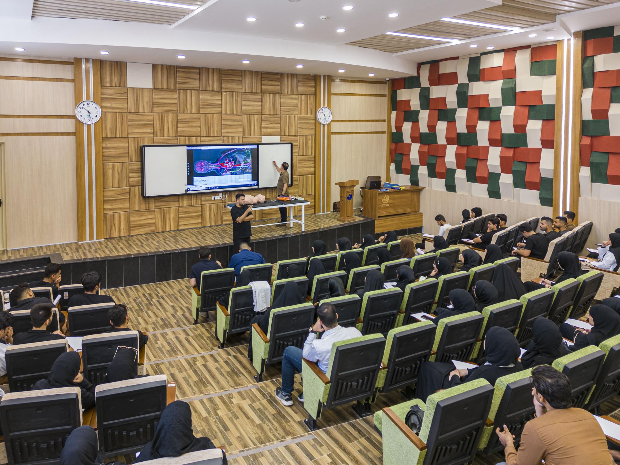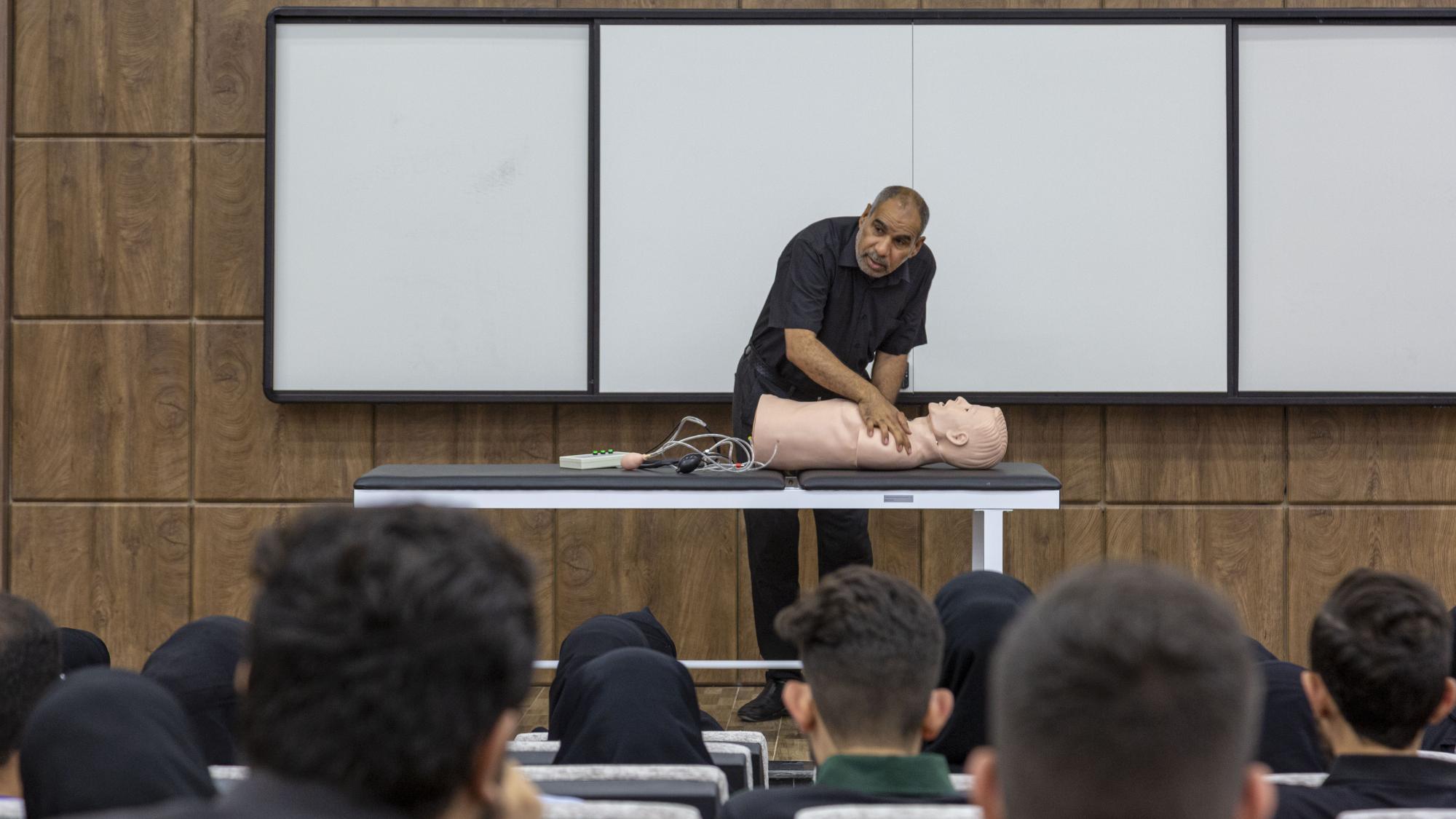 وقدّم الدورة فريق متخصّص من دائرة صحة النجف الأشرف، تضمنت تدريب الطلبة وتعريفهم بأهمية الإسعافات الأولية لإنقاذ حياة الأشخاص وإزالة خطر الموت عنهم، خصوصًا الحالات الطارئة التي تتطلب تدخلاً سريعًا وعاجلًا ومنع حدوث أي مضاعفات خطيرة للمريض، بالإضافة الى إزالة الضرر عنه لحين وصوله إلى المستشفى لتلقي العلاج المناسب.