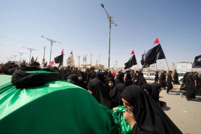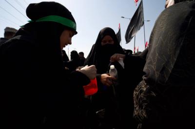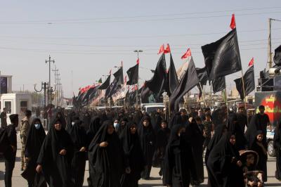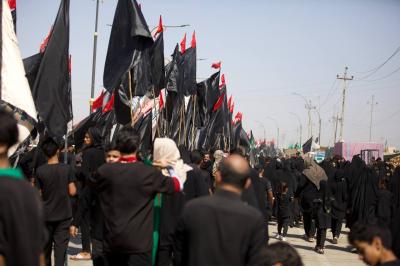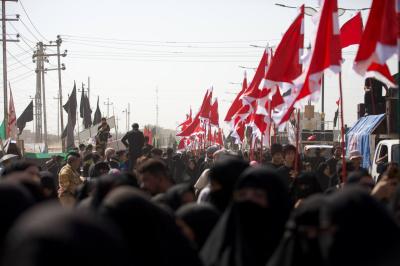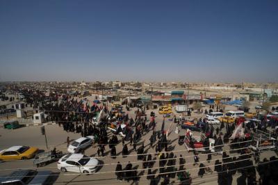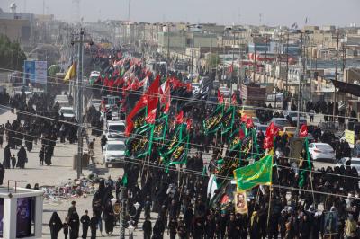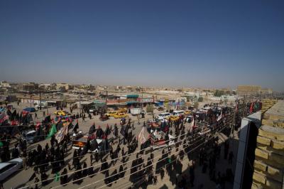 Visitors heading to the holy city of Karbala to commemorate the Arba'een of Imam al-Hussayn (peace be upon him) arrived at the Souq al-Shuyukh district in Dhi Qar governorate on foot.
