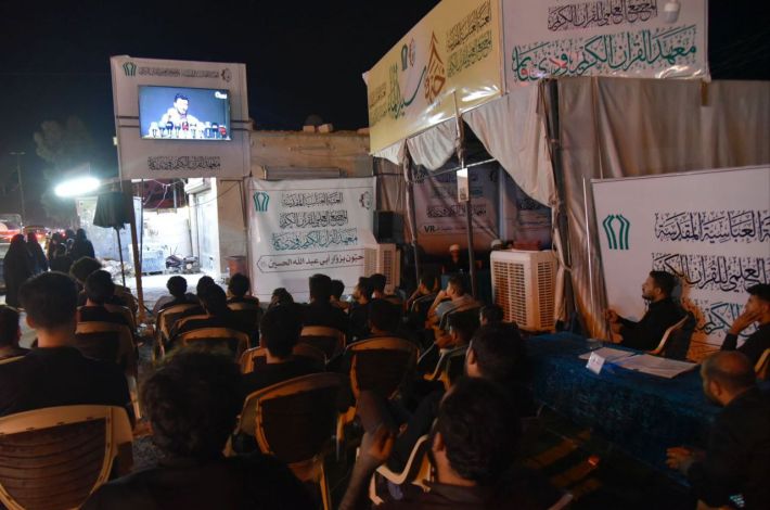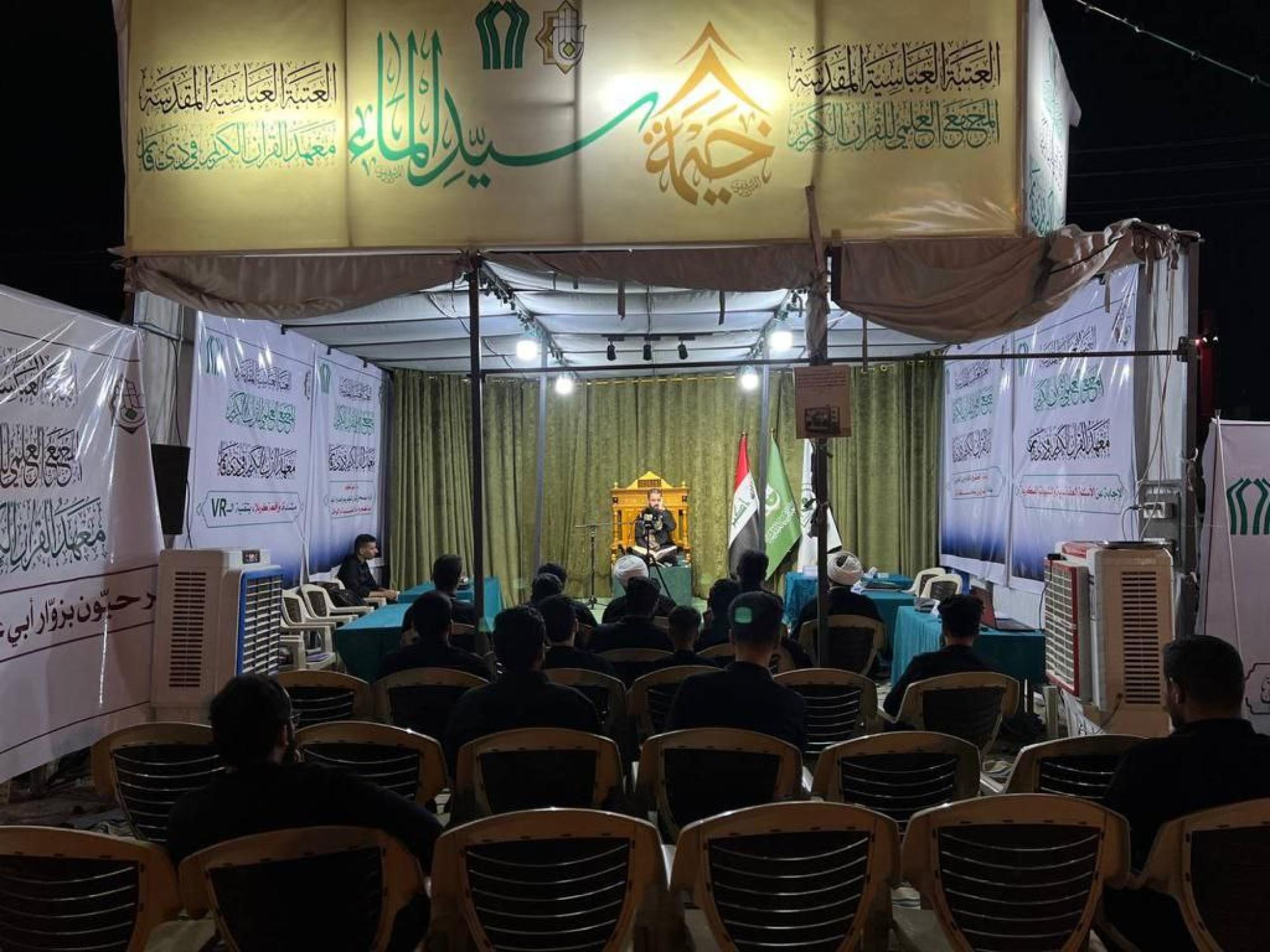 وفي ذات السياق أكد مسؤول وحدة التلاوة في المعهد السيد فيصل مطر أن "الخيمة تقام لمدّة ستة أيّام متواصلة من الساعة الثالثة عصرًا لغاية صلاة الفجر، وتستعرض توصيات المرجعية الدينيّة العليا للزائرين، ومحاولة خدمتهم فكريًا".