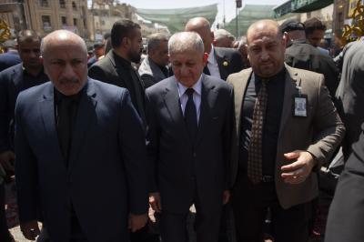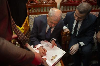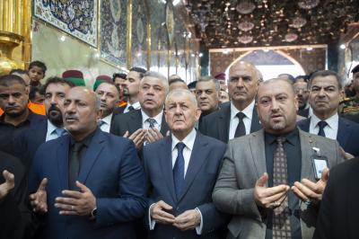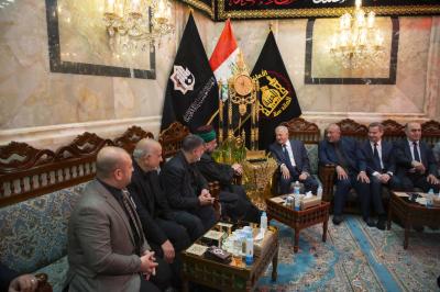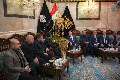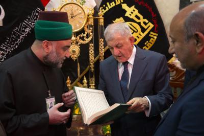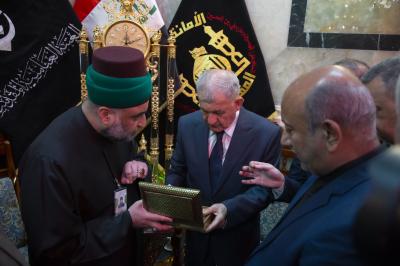 The secretary general of the Al-Abbas's (p) holy shrine; Sayed Mustafa Mortada Aal Dia-Uddin, received the president of the Republic; Mr. Abdul Latif Jamal Rashid, on Saturday, and briefed him on the services provided to visitors during the Ziyarat Arba'een.