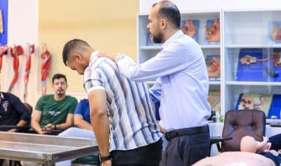 وتضمنت الورشة التي قدمها مختصّا طب الطوارئ الدكتور فاهم الجبوري والدكتور علاء الجنابي، التدريب على أساسيات الفحص العام للمرضى وتقديم الإنعاش الأولي والحياتي للمصابين، فضلاً عن التدريب على مهارات معالجة الحالات الطارئة وطب الحشود.