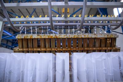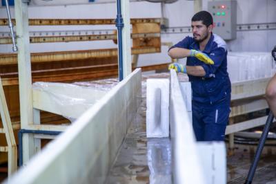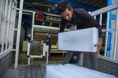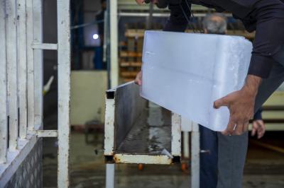 وأضاف "يتكون المعمل من حوضين لتجهيز قوالب الثلج، بقدرة إنتاجية (500) قالب للحوض الواحد، إذ تكون جاهزة لثمان ساعات للحوض الواحد وعلى مدى (24) ساعة ليستوفي الطاقة الإنتاجية الكاملة".