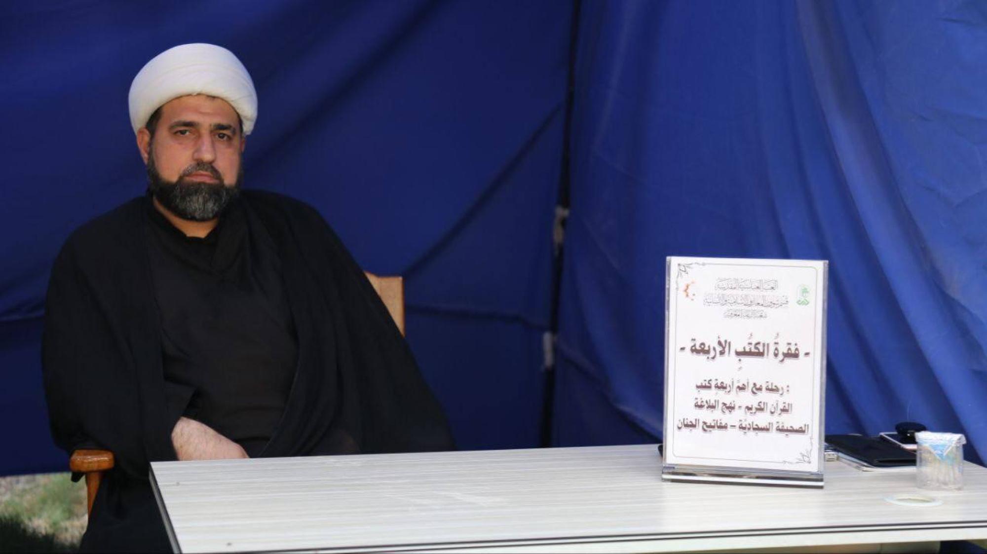 وقال معاون رئيس القسم الشيخ علي الأسدي، إنّ "موكب خازن الكتاب الثقافي، الذي أقيم على طريق (كربلاء – النجف)، قرب جامعة العميد، يضم ثماني خيمات، لكل خيمة اسم خاص بها".