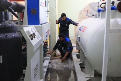 وقال مسؤول شعبة الآليّات والسقاية التابعة للقسم السيد حسين عبد ربه إن "الخطّ الإنتاجي الجديد لمعمل الثلج البلوري يضمّ أربع مكائن، بطاقةٍ إنتاجية تصل لمئة (كيس) من الثلج في كلّ نصف ساعة".
