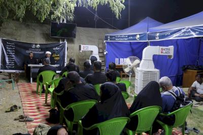 الموكب مستمرّ بتقديم مختلف الخدمات الثقافيّة للزائرين الكرام على مدار الساعة، مع تزايد أعداد الزائرين الذين يرتادونه.