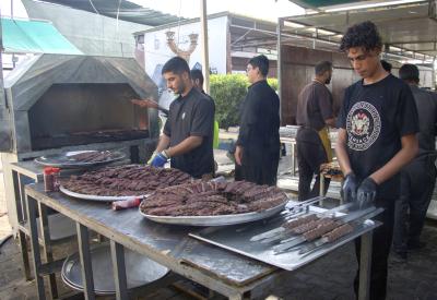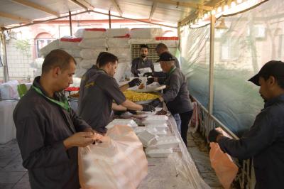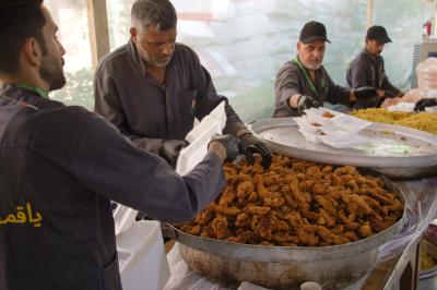 Le complexe Al-Alqami du sanctuaire sacré d'Aba al Fadl al-Abbas (p) fournit plus de 20 000 repas par jour aux pèlerins d'Arbaeen.