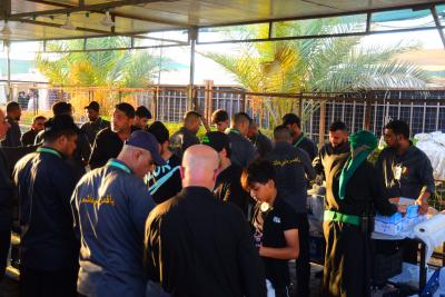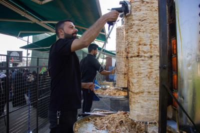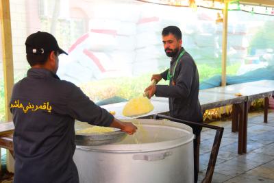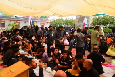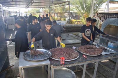 Le chef de l'unité d'accueil du complexe, M. Alaa Hassan, a déclaré : « Le complexe fonctionne depuis 7 jours pour fournir des repas toute la journée aux visiteurs se dirigeant vers les sanctuaires de l'Imam Hussein et de son frère Aba al Fadl al-Abbas (paix sois sur eux) à pied, dans l'axe (Babylone-Karbala)".