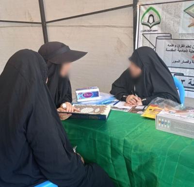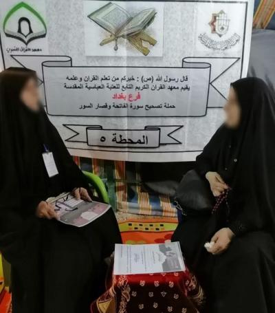 وقالت مديرة الفرع السيدة أنوار عبد الرزاق، إنّ "فرع بغداد أقام محطات قرآنية متعدّدة في بغداد لتصحيح تلاوة القرآن الكريم في طريق الزائرات المتوجهات إلى كربلاء المقدسة لإحياء زيارة أربعين الإمام الحسين (عليه السلام)".