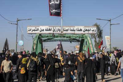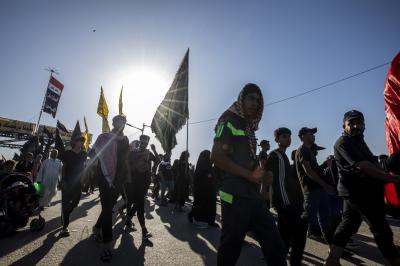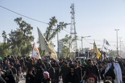 شهرستان الهندیه در جنوب شرقی استان کربلا مملو از زائرانی است که با پای پیاده به سمت کربلای معلی آمده اند تا در بزرگداشت اربعین حسینی شرکت کنند.
