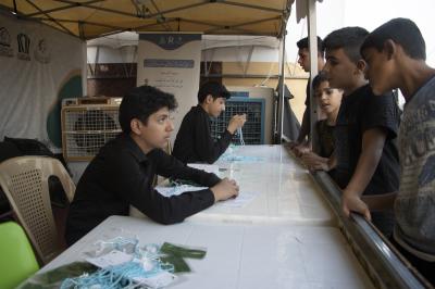 Mukaddes Hz. Abbas (a.s.) Türbesi'ne bağlı Kur'an-ı Kerîm İlimleri Kompleksi, El-Alkamî Kompleksi bünyesindeki merkezinde Erbain ziyaretçileri için Kur'an hizmeti sunuyor.