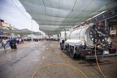 Kazi ya kusafisha Barabara zinazoelekea Ataba tukufu inaendelea baada ya kumaliza ziara ya Arubaini, kwa ushiriki wa kitengo cha usafi.