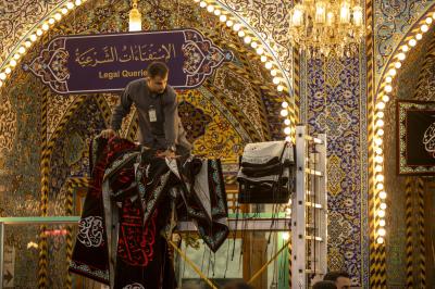 خليل مهدی هنون، رئیس این بخش گفت: پرسنل ما جمع آوری پرچمها و کتیبههای سیاه عزا را در حرم مطهر حضرت ابوالفضل عباس (علیه السلام) همزمان با پایان ماه محرم و صفر و حلول ماه ربیع الاول سال ۱۴۴۵ هجری آغاز کردند.