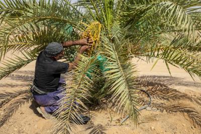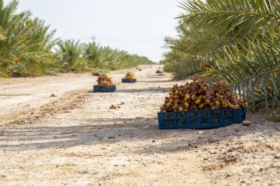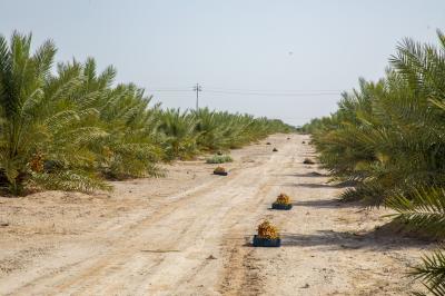 وأضاف، أنّ "مزارع المشروع تبلغ (33) مزرعة تضمّ أنواعًا نادرةً من النخيل، منها البرحي والمجهول والتبرزل والعمراني والبريم، فضلًا عن صنف الزهدي، إضافة لمزرعتين للزيتون والسدر تُسقى جميعها بنظام التنقيط بالاعتماد على مياه الآبار"، موضحًا أنّ إجمالي عدد النخيل بلغ (32100) نخلة، توزعت ما بين المنتجة والفسائل".