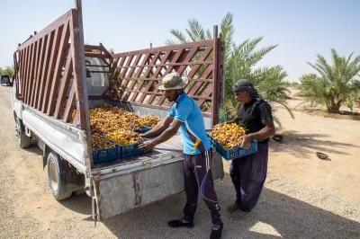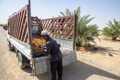 وتابع أنّ "قسمًا من كميات التمور التي ينتجها المشروع يتم تسليمها لمعمل التعليب الموجود في مزارع الساقي لغرض تعليبها وكبسها وتوزيعها على مراكز البيع المباشر لأسواق الكفيل".