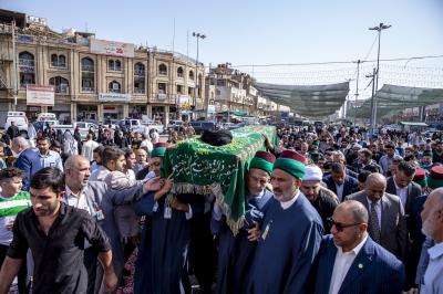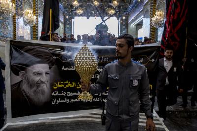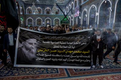 مراسم تشییع آن علامهی فقید از خیابان باب قبله حضرت اباالفضل العباس (علیه السلام)، با حضور توليت آستان قدس عباسی و شماری از اعضای هیئت مجلس اىاري آستان آغاز شد. در این مراسم سید عیسی الخرسان، تولیت آستان قدس علوی و جمعی از شخصیتهای دینی، اجتماعی و طلاب حوزه علمیه شرکت داشتند.