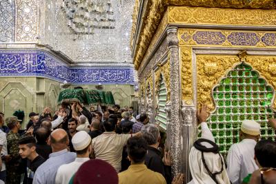 با اتمام زیارت در حرم مطهر حضرت اباالفضل العباس (علیه السلام)، آن پیکر مطهر برای انجام زیارت و نماز به حرم مطهر امام حسین (علیه السلام) تشییع شد.