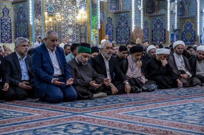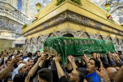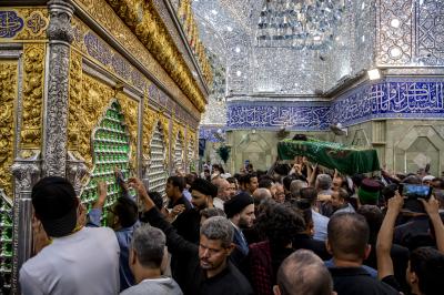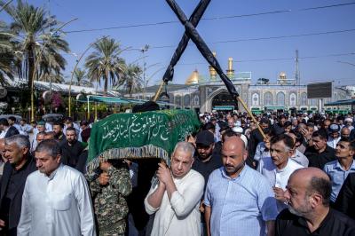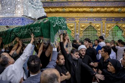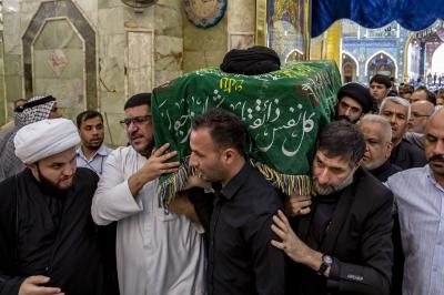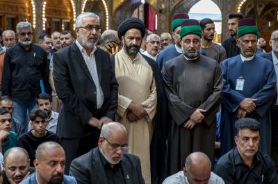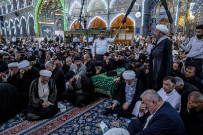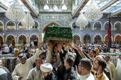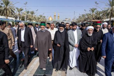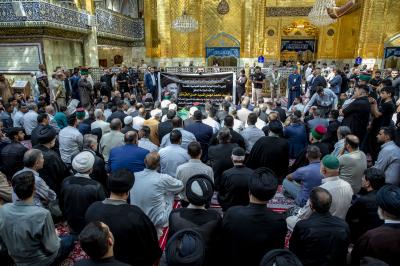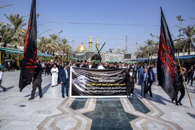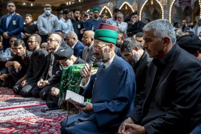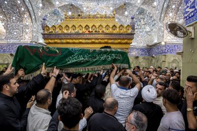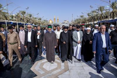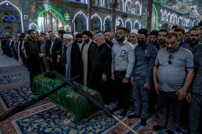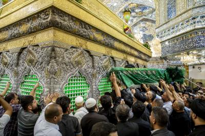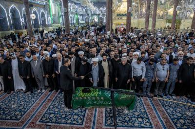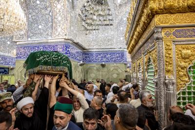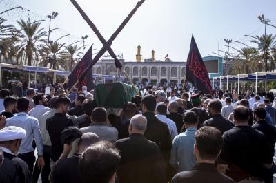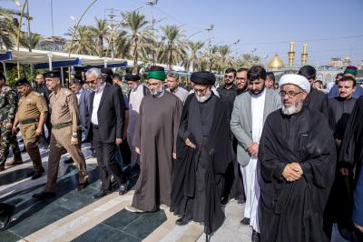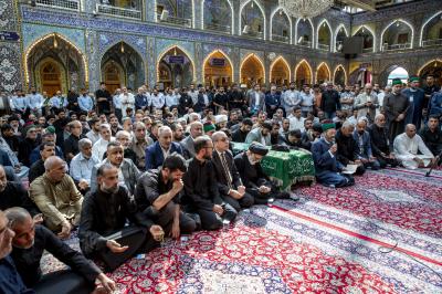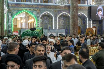 عزاداران پیکر مطهر آن فقید ارزشمند حوزه علمیه را با عبور از بین الحرمین، به حرم مطهر امام حسین (علیه السلام) مشایعت کردند تا در آنجا، مراسم زیارت و نماز به امامت متولی شرعی آستان قدس حسینی، شیخ عبد المهدی الکربلائی به جای آورده شود.