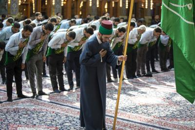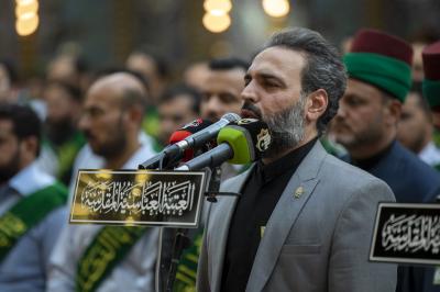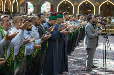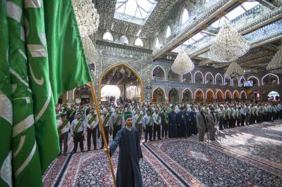 وتابع "يستذكر خَدَمة المرقد الطاهر خلال وقفتهم الإنشاديّة مآثر أئمّة أهل البيت(عليهم السلام)، بمشاركة جمعٍ كبير من الزائرين الوافدين للعتبة العبّاسية المقدّسة".