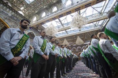أدى خدمة العتبة العبّاسية المقدسة مراسيم الممارسة العبادية، في الصحن الشريف لمرقد أبي الفضل العباس (عليه السلام).