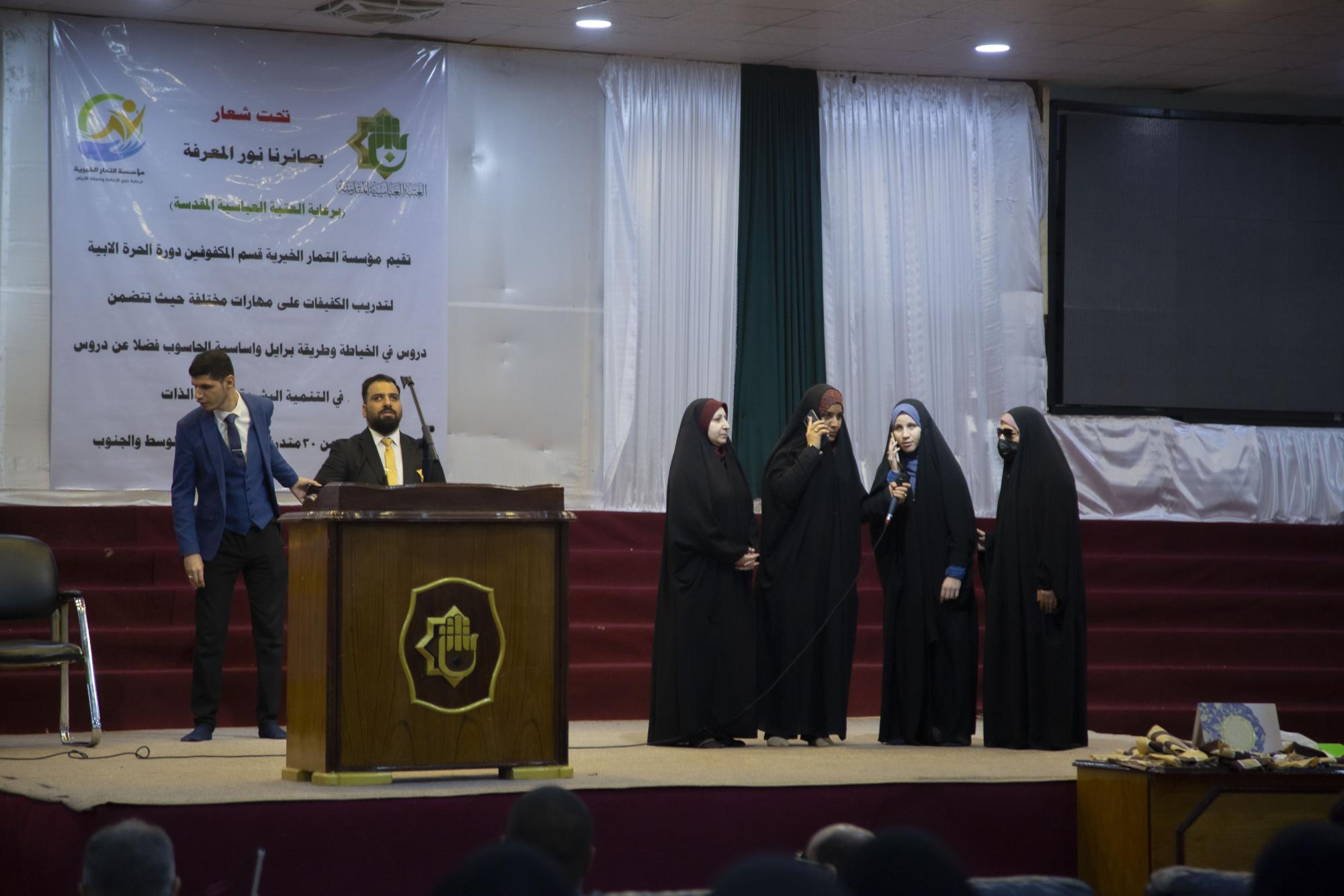 اختتمت فعاليات دورة الحرة الأبية لتدريب الكفيفات برعاية من العتبة العباسية المقدسة وبمشاركة (30) مستفيدة، من محافظات وسط العراق وجنوبه، وجاءت تحت شعار (بصائرنا نور المعرفة).