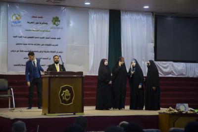 واستهلت فعاليات الاختتام بقراءة آيات من القرآن الحكيم بصوت قارئ العتبة المقدسة السيد كرار المياحي تلاها كلمة للمجمع العلمي ألقاها الدكتور لواء عبد الحسن بين فيها التباين بين البصر والبصيرة موضحا أن القليل من الناس يمتلكون البصيرة والتي من خلالها نهتدي وتخرجنا من الظلمات إلى النور.