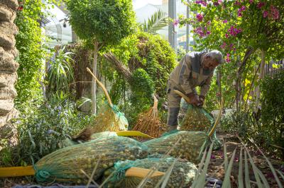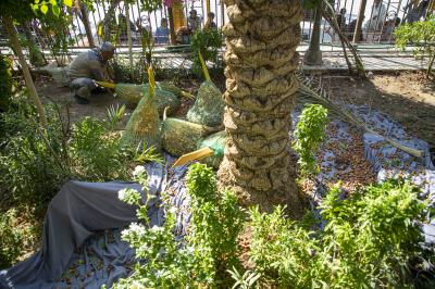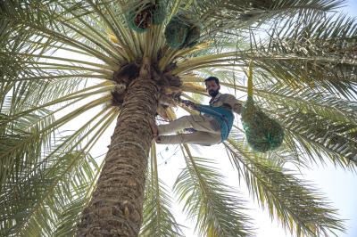 Habeeb wies darauf hin, dass "Palmen durch Bewässerung, Reinigung, Bestäubung, Düngung, Pflege und Schädlingsbekämpfung mit den besten Pestiziden eine besondere Pflege erhalten".