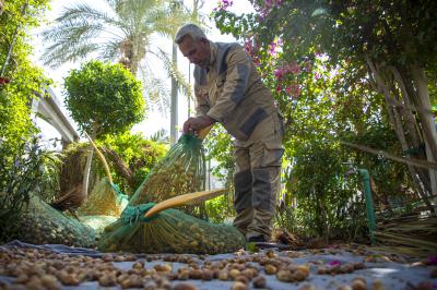 Der Leiter und Präventionsspezialist der Einheit, der Agraringenieur Hatem Abdul Karim Habeeb, sagte: "Unsere Mitarbeiter haben mit der Ernte der Palmfrüchte auf dem Zentralplatz begonnen, die sich auf mehr als 5 Tonnen belaufen, um sie als Segensgeschenke auf die Besucher der Heiligen Husseinitischen und Abbassitischen Schreine direkt und unmittelbar nach der Reinigung zu verteilen."