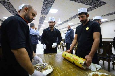 أقامت العتبة العسكرية المقدسة بالتعاون مع موكب العتبتين المقدستين الحسينية والعباسية، مأدبة طعام في الصحن العسكري المطهر للزائرين في ذكرى تتويج وريث الوصاية، الإمام الحجّة بن الحسن (عجّل الله تعالى فرجه الشريف).