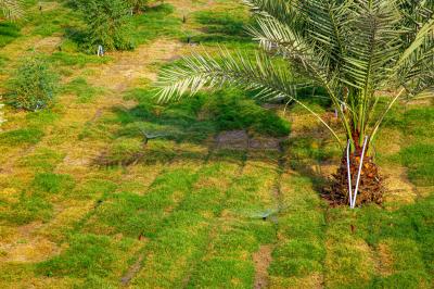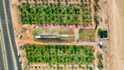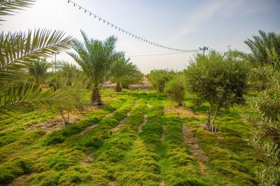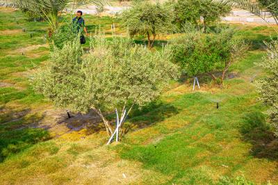 According to Miteb, the Oasis was implemented on an area of ten thousand square meters, and contains 409 palm trees and 304 olive trees, in addition to 752 young palms and 467 other plantings".