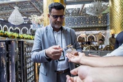 Akaongeza kuwa “Tuna watumishi maalum amboa husafisha dirisha la kaburi, pambo la dhahabu (Twarima), mlango wa qibla, dirisha na Maqaam ya Imamu Mahadi (a.f) na Sardabu zilizopo ndani ya haram tukufu kwa kutumia vifaa maalum”.