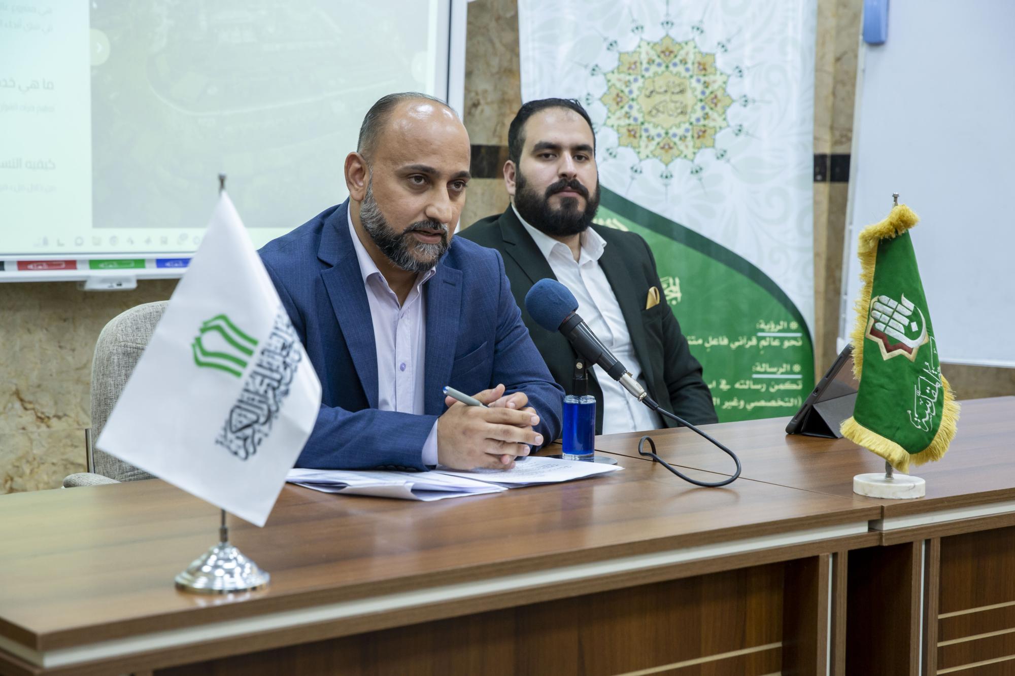 وقال المعاون العلمي لرئيس المجمع الدكتور لواء عبد الحسن عطية "عقدت اليوم في رحاب العتبة العباسية المقدسة الورشة العلمية الأولى بعنوان مقرأة القرآن الكريم الإلكترونية، هذا المشروع العالمي الكبير تقدمت به جامعة تكنولوجيا المعلومات والاتصالات للأمانة العامة للعتبة المقدسة، والهدف منه تعليم القرآن الكريم للمتدربين عن قرب أو عن بعد، عبر توفير منصة إلكترونية وموقع وتطبيق خاص لأجهزة الهواتف الذكية والأجهزة اللوحية".