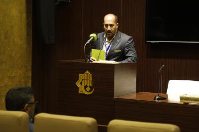 The evening research session on the historical axis was chaired by Dr. Mushtaq Bashir al-Ghazali, and its events were held in the imam al-Hassan Hall (peace be upon him), while the linguistic and literary axis was held in the Al-Qasem Hall(peace be upon him) at the holy shrine, and was chaired by Dr. Muzahem Matar Hussein.