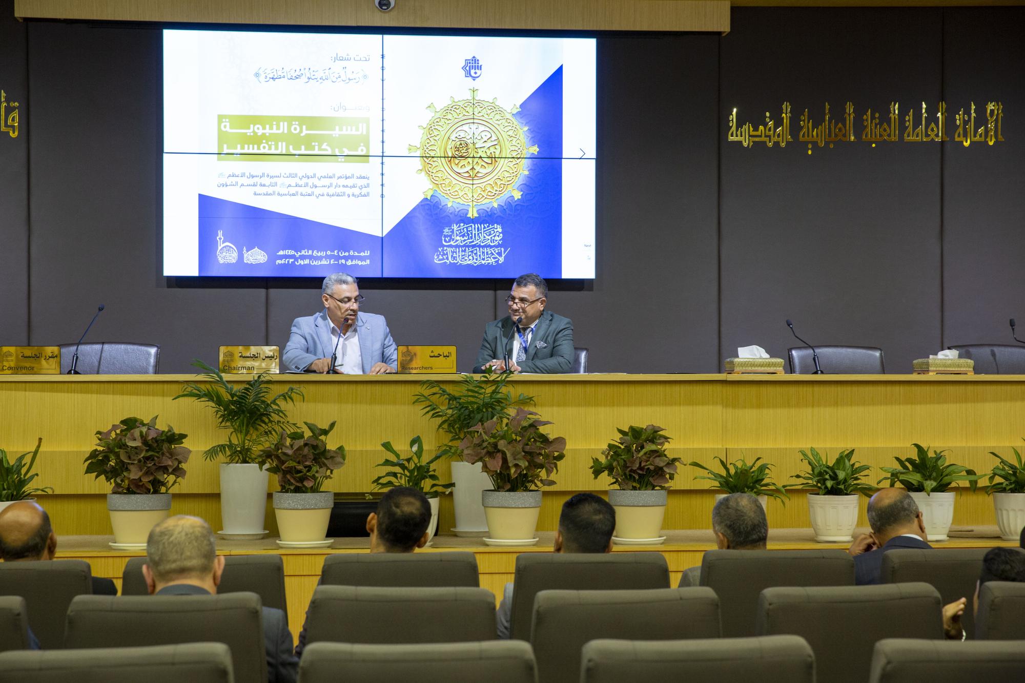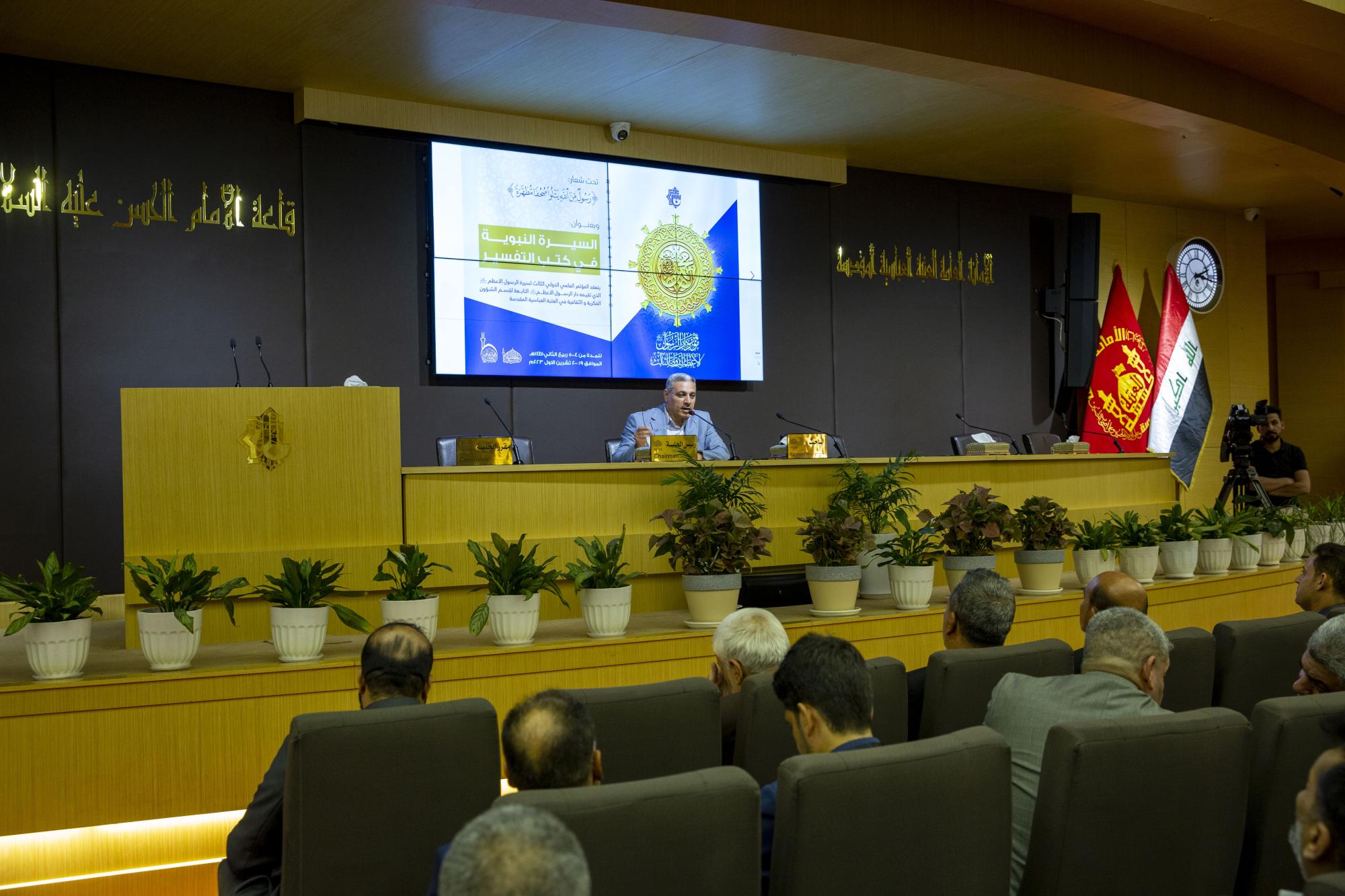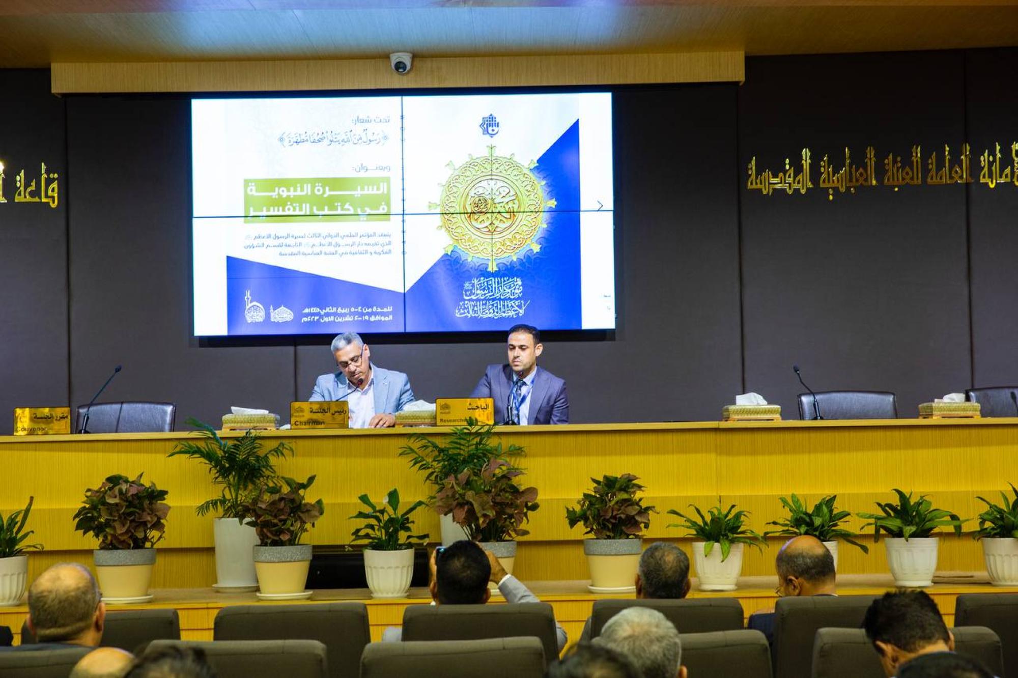 جاء ذلك خلال الجلسة المسائية للمؤتمر الدوليّ الثالث لدار الرسول الأعظم(صلّى الله عليه وآله)، التابعة لقسم الشؤون الفكرية والثقافية في العتبة العباسية المقدّسة، الذي يُعقد تحت شعار (رَسُولٌ مِّنَ اللهِ يَتْلُواْ صُحُفًا مُّطَهَّرَةً) وبعنوان (السيرة النبوية في كتب التفسير).