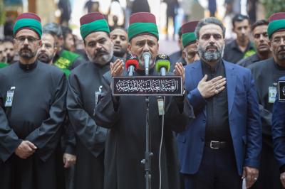 این مراسم که در روزهای دوشنبه و پنجشنبه هر هفته برگزار میشود، با قرائت زیارتنامه حضرت ابوالفضل عباس (علیه السلام) توسط خادمان حرم مطهر آغاز شد. ایشان در مقابل ضریح به صف ایستاده و پس از آن سرود (لحن الابا) را سر دادند.