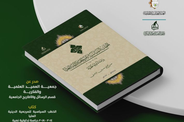 صدر عن قسم الرسائل والاطاريح الجامعية في جمعية العميد العلمية والفكرية الكتاب الخامس ضمن سلسلة (منارات) الموسوم بـ: (الخطب السياسية للمرجعية الدينية العليا 2014- 2018 دراسة تداولية نصية).