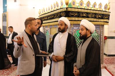 Der Delegation gehörten der Leiter des Büros des geistlich-Bevollmächtigten des heiligen Schreins, Dr. Afdhal al-Shami, der Leiter der Abteilung für religiöse Angelegenheiten, Scheich Salah al-Karbalai, der Leiter der Abteilung für technische Wartung und Bau, Herr Qaseem al-Mousawi, und der Verwaltungsassistent des Leiters der Medienabteilung, Herr Jassam al-Saidi, an.