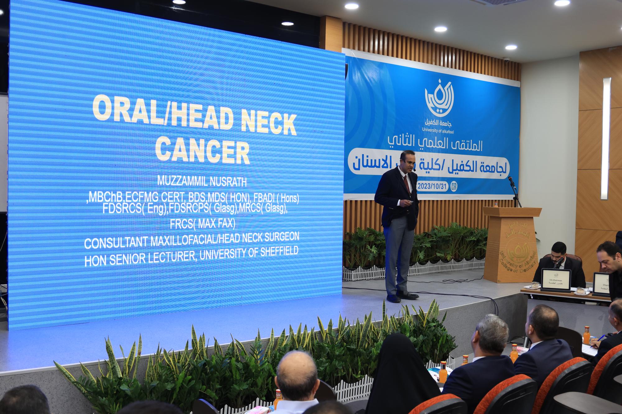 وقال عميد الكلية الدكتور كريم الغانم إن "جامعة الكفيل أقامت المُلتقى العلمي لكلّية طبّ الأسنان بنسخته الثانية، الذي يتضمّن مناقشة آخر تقنيات جراحة الفم والفكّين، بحضور الأخصائي (مزمل نصرات) من جامعة شيفيلد في بريطانيا، ونخبة من أكاديميّي الجامعات العراقية والعالمية".
